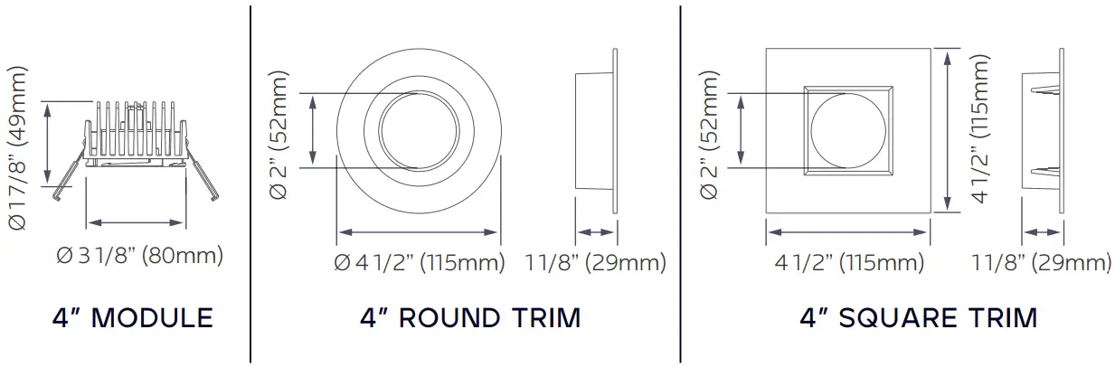 4” MODULE – CUTOUT: Ø 3.75” (95mm)