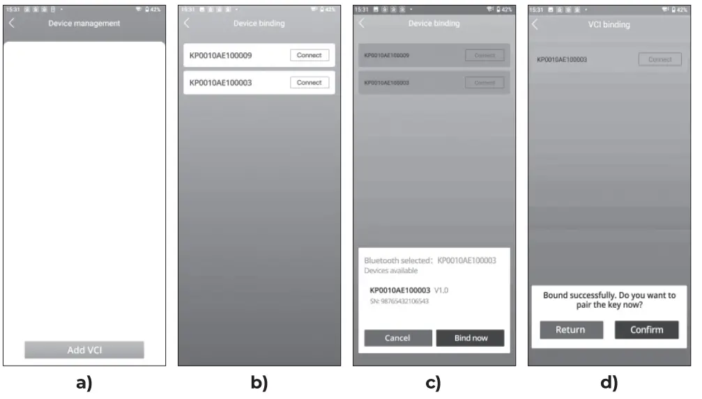 Use this function to connect the VCI to the app.