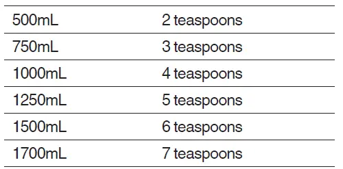 (approximately 5g) to fill the basket with tea leaves. As a general guide, use 1 teaspoon of tea leaves per cup / 250ml of water, however this will depend on the instructions on tea packaging and your personal preference. Re-place the tea basket lid.