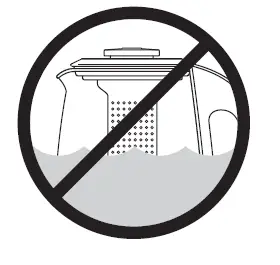 - To protect against electric shock, do not immerse the glass jug base, power base, power cord or power plug in water or allow moisture to come in contact with these parts. Avoid spilling water onto the power base’s connector. Do not immerse the glass jug or the power base for cleaning.
