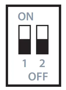 ![]() | Default Address: 1 Baud: 9600 | Default setting (1 ON and 2 OFF). Use this setting to connect the PC to the 6M.Tx using Address 1 and baud rate of 9600 b/s |