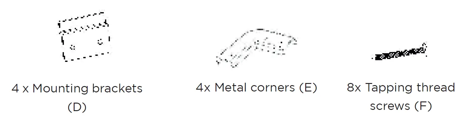 Before installation, please check that all the parts listed above are included! If parts are missing, contact the dealer from whom you purchased the product and wait for the parts to arrive before completing the installation.