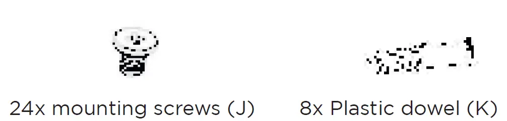 - Mount the mounting bracket (C) with the self-tapping screws (F) and the plastic dowels (K) in a load-bearing surface. Please use suitable mounting ma-terial for your surface.