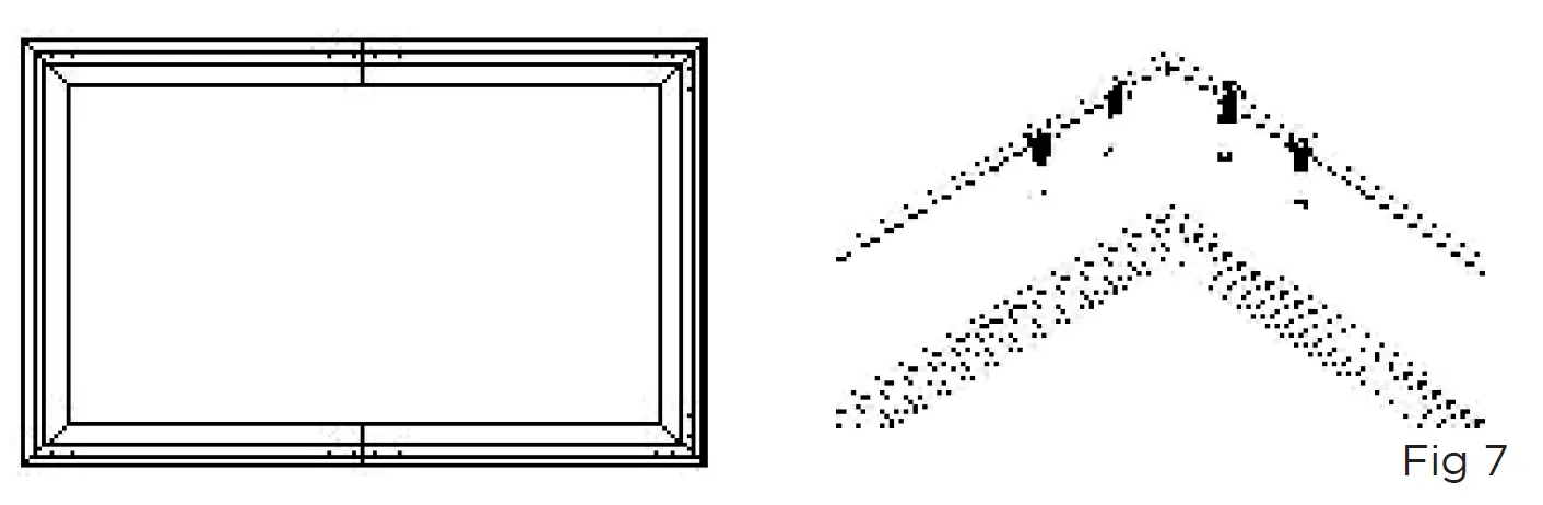 - Once all frame parts are inserted into each other, each corner is fixed with 4x screws (J) (Fig. 7). When tightening, make sure that the corners are exact-ly at 90° to each other, Only then should you tighten the screws.