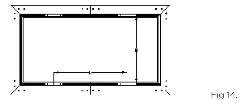 - Mount two wall brackets (I) per horizontal frame part (A). Make sure that the brackets are evenly distributed along the length (as shown in Fig. 14) and are opposite each other.