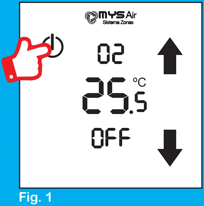 To turn the thermostat on or off, press the C) icon that appears on the screen (Fig. 1 ).
