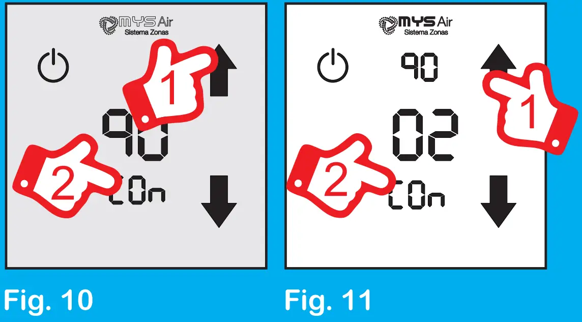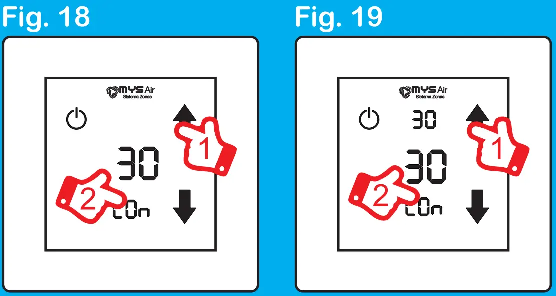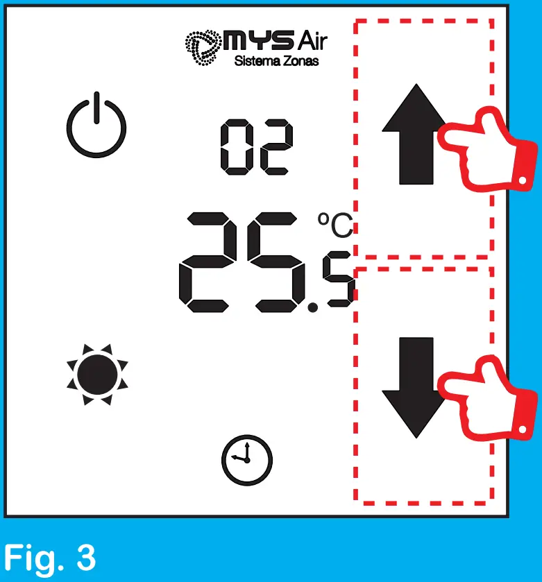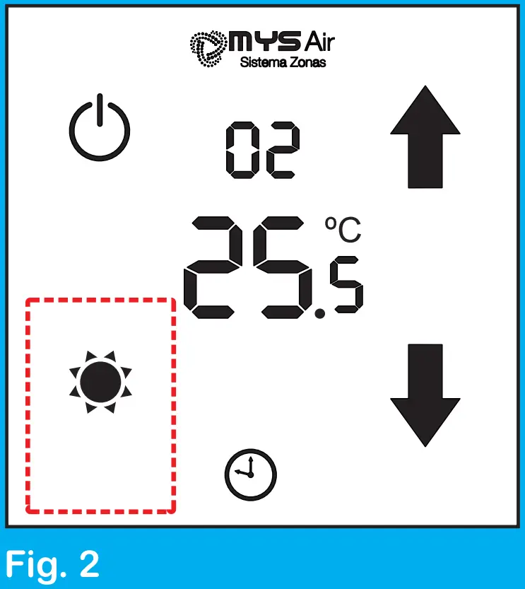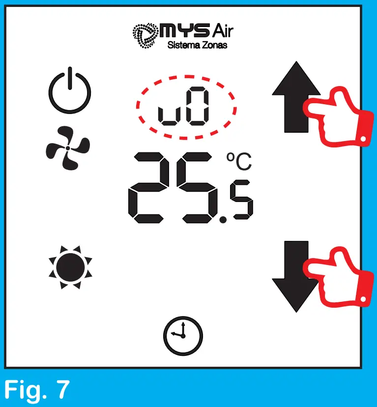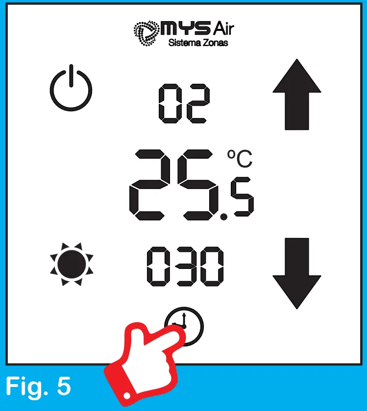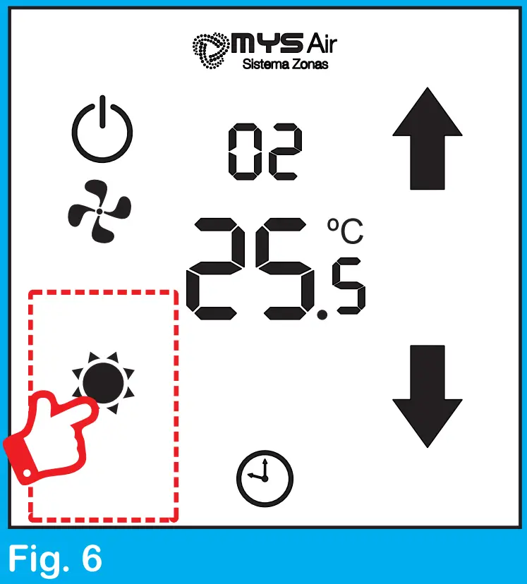 To control the fan speed, press and hold the zone of the screen where the work modes appear (Fig. 6), until the zone number appears