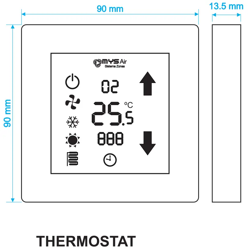 The thermostat can have up to 6 working modes depending on whether the installation is only for ventilation or if it has a combined stage for underfloor heating/cooling.