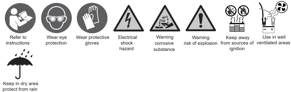 ✓ Familiarise yourself with the application and limitations of the charger as well as the potential hazards. Also refer to the vehicle manufacturer’s hand book. IF IN ANY DOUBT CONSULT A QUALIFIED ELECTRICIAN.
