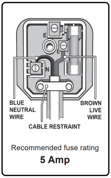 ✓ Replace a damaged plug with a BS1363/A 13 Amp 3 pin plug. If in doubt contact a qualified electrician.