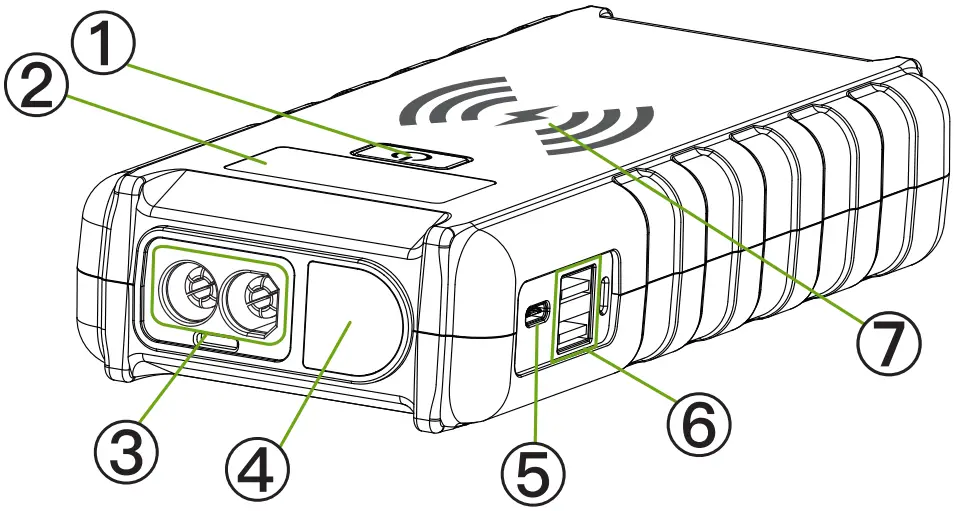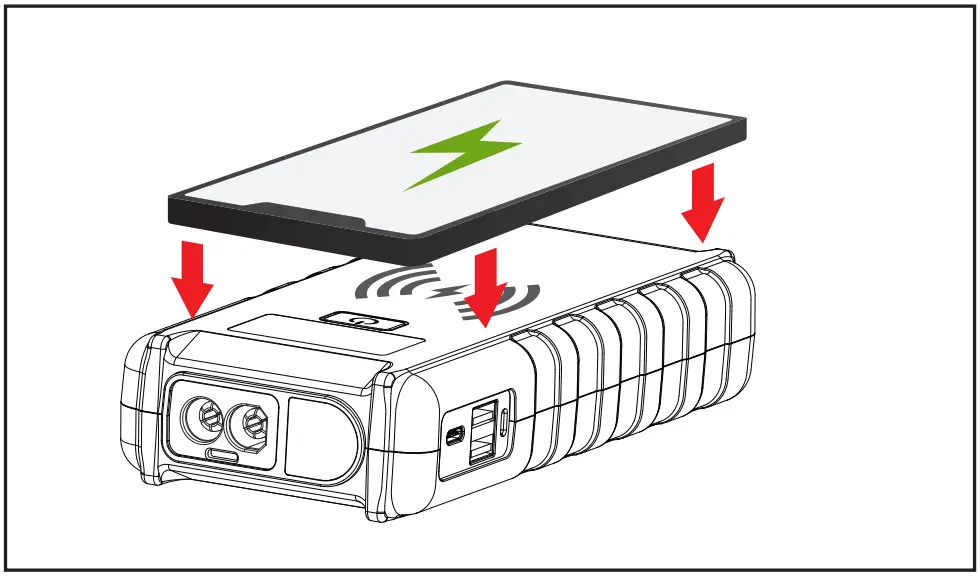 ” flashes quickly when the wireless charging is abnormal). - In the working state, the discharge of jump start port can normally indicate the electric quantity.