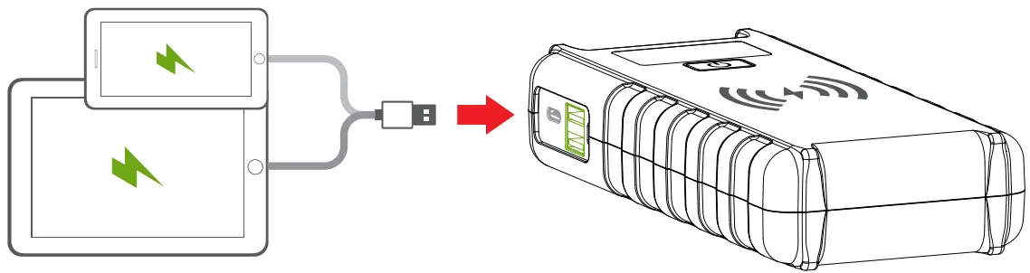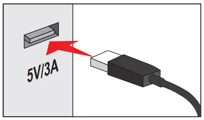 Connect the charging cable to a DC 5V/3A USB port to recharge the product.