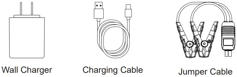 - Be sure to use the standard jumper cable that comes with the product to start the vehicle.