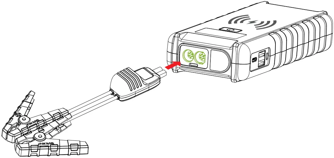 - lnsert the jumper cable to the product’s jump start socket. The Jumper cable’s GREEN LED “