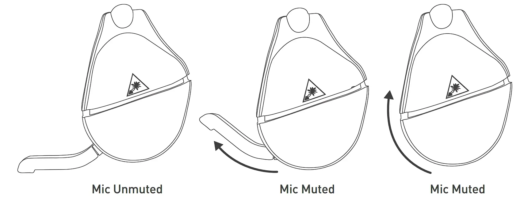 Flip up mic to mute. There is an audible tone when the mic is muted or unmuted.