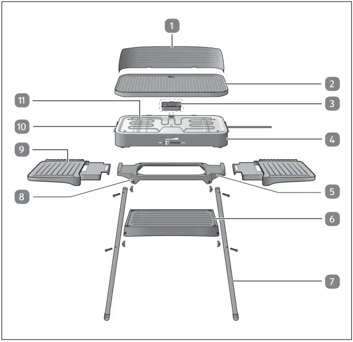 2 | Grill plate | 11 | Heating coil |