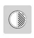 Short press to toggle polarity (color palette). Long press to power on laser