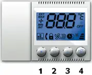 The room thermostat is provided with four frontal keys for the local management of the thermoregulation. The function of every keys is the following: