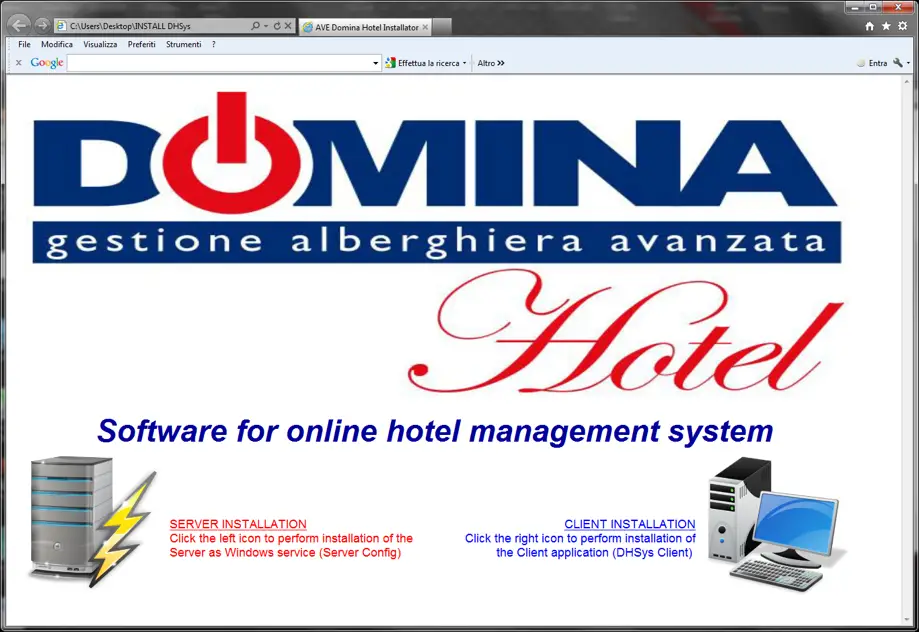 Install the Server application clicking on the icon on the left (see figure) and then follow the instructions that the installation program will report in the window. If the browser requires it, confirm the reliability of the software to be able to go on with the installation procedure.