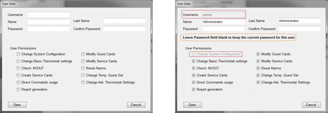 | Impossible to modify the temperature setting on the room thermostat | Not enabled card Changes to the set disabled Keypad locked on the thermostat (symbol lock on) | Verify that the card inserted in the reader allows the modification of the settings of the thermostat (the chambermaid card is not enable to AC management!!!). Verify from software that the modifications to the temperature set are allowed. If appears the symbol of the padlock click on the two external keys of the thermostat simultaneously to unlock it. |