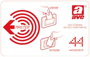 User card: (cod. 44339CHU-M) It is the generic card that can be programmed by the system as guest or staff card. This card must be preserved with care far from electromagnetic fields and must not be folded or drilled. The user cards, on demand, can be also provided without serigraphy (completely white) customizable by the hotel (AVE SpA does not offer personalization of the user cards).