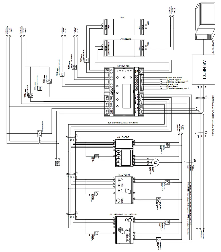 NETBus: Backbone bus line dedicated to the communication between the control units (cod. 53AR01-485 or cod. 53AR02-485) and the Ethernet interface or gateway cod. AR-NET01.