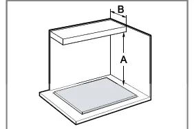 - Verify that unprotected cabinets above the cooktop are a maximum of B=13″ (330 mm) deep.