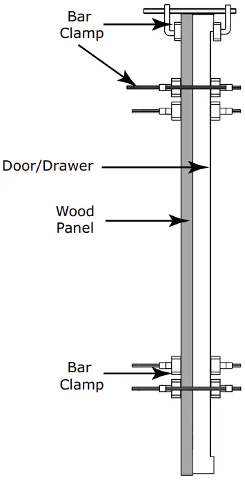 Due to differences in floor construction or surrounding cabinetry, the panel may not sit flush with the top of the door - Secure integrated panel to door using clamps. A robust tape may also be used. U-Line recommends the use of bar clamps to secure the panel to the door. If using tape, be certain the tape will not damage panel finish upon removal.