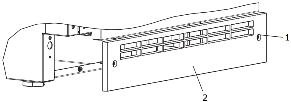 - Remove grille (plinth strip/base fascia) (2) from unit.