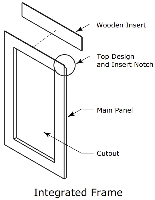 When applying an integrated frame to a unit, ensure that both sides are finished in order to prevent warping. In some frame installations, the panel may be visible through the glass while the door is open.