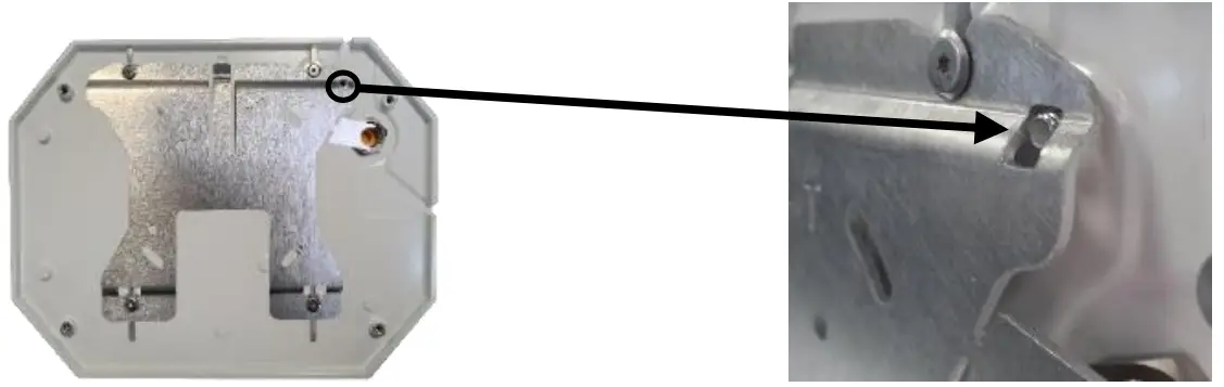 Step 3: Remove the metal mounting plate by exerting pressure on the metal plate while sliding it. Leave the four mounting screws in place.