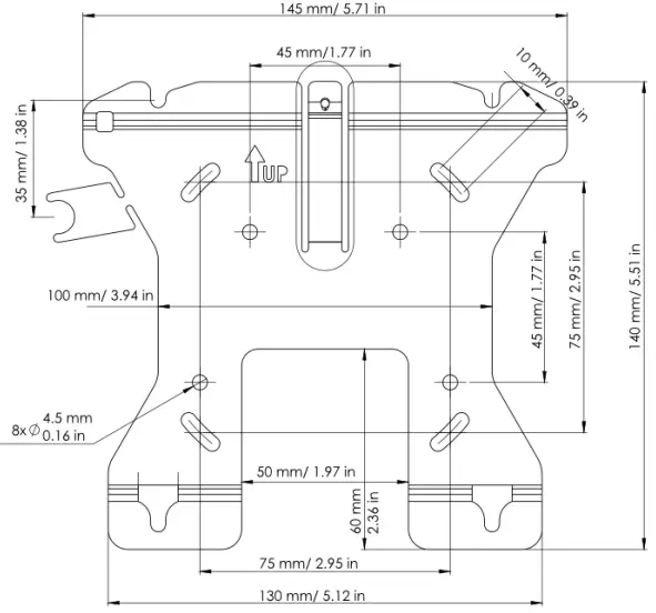 - Fix the standard 75×75 mm VESA type mounting bracket on the reader using the M4x12 stainless steel screws provided in the mounting kit.