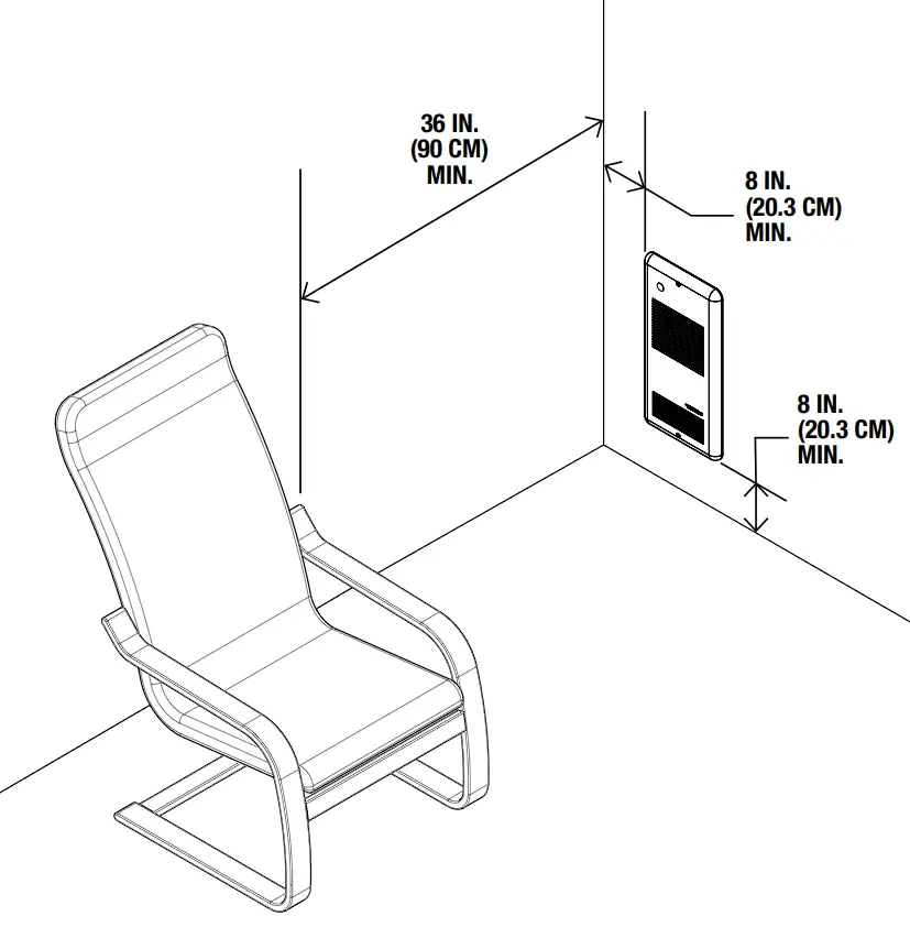 ATTENTION: To avoid any risk of overheating, leave a clearance of at least 36 in. (90 cm) in front of the fan heater, 8 in. (20.3 cm) on either side of it and at least 8 in. (20.3 cm) from the ground.