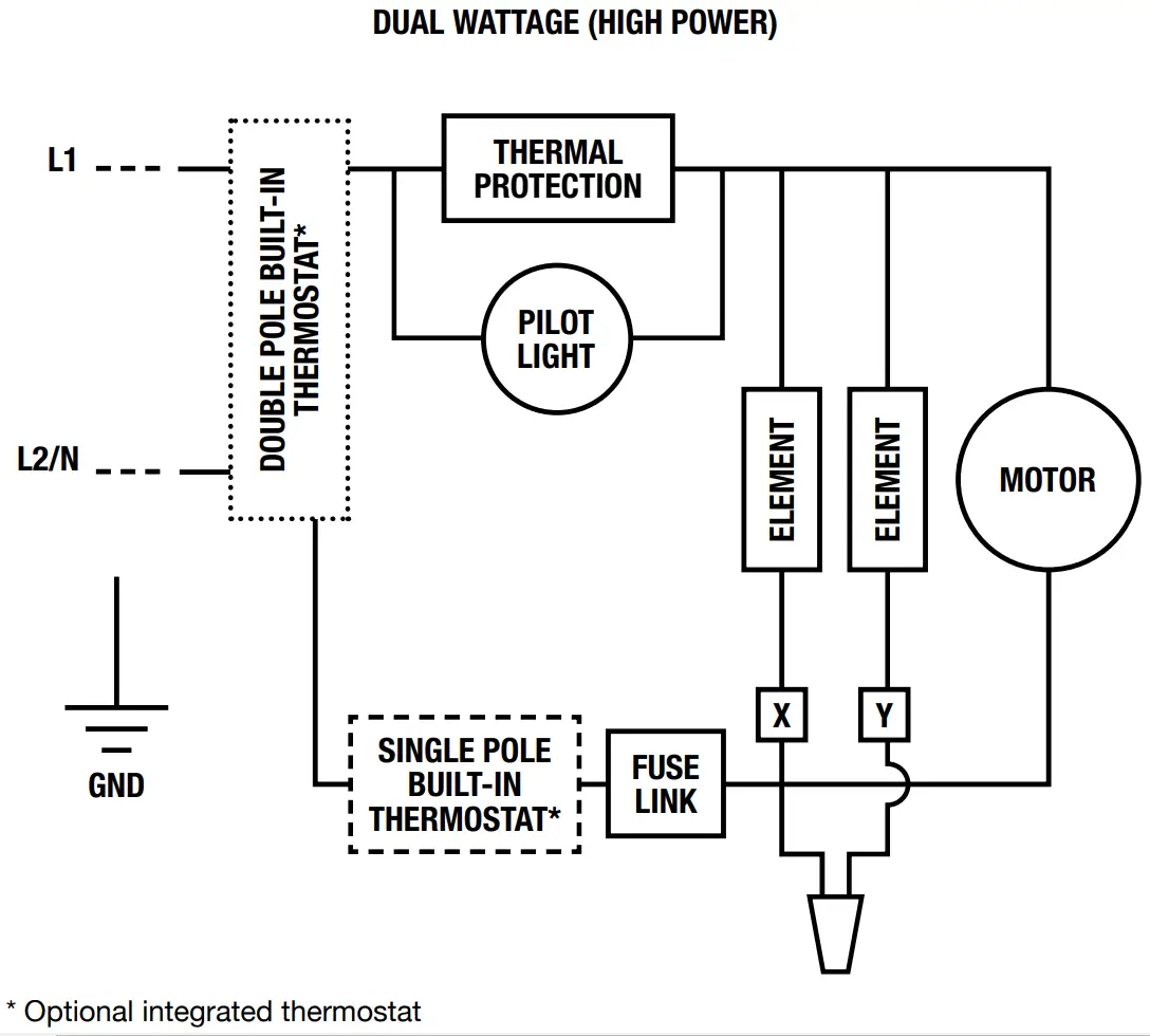 | ARWFxxxxT2 | This model can be controlled with its double pole mechanical thermostat.