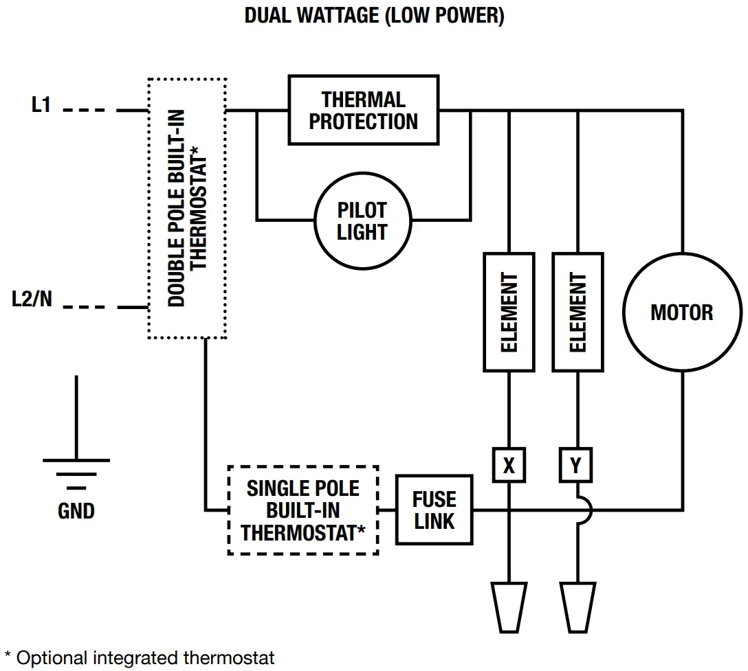 | ARWFxxxxT | This model can be controlled with its single pole mechanical thermostat.