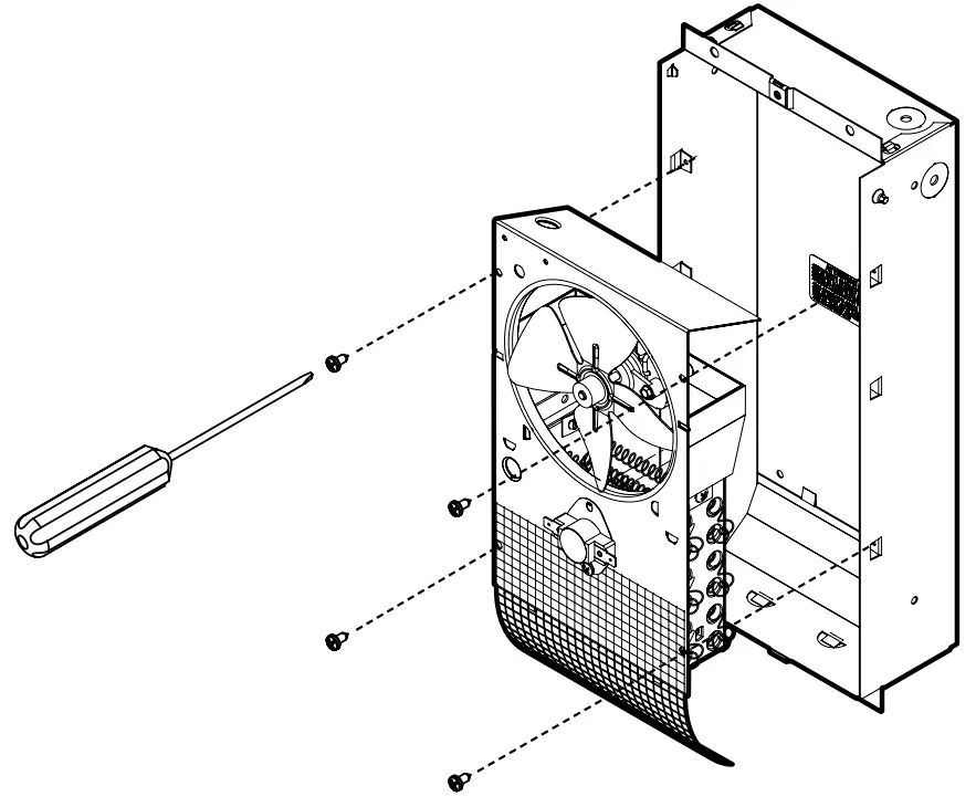 - Attach the grilled front panel with the two (2) screws once the wall is finished.