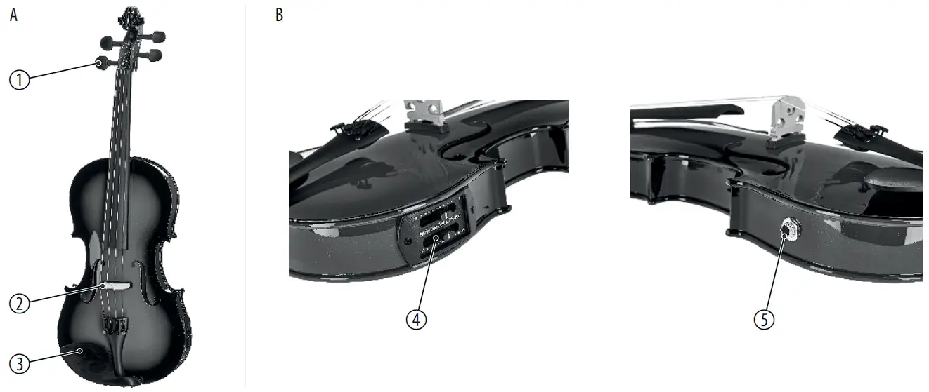 - 1 × electro-acoustic violin with built-in passive Piezo pickup system