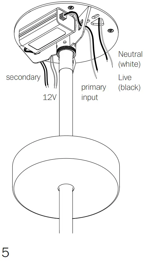 iv. Connect supply wires to primary input wires of driver. Ensure `Live’ & `Neutral’ wires are respected. (Ensure that line voltage is not active during this part of the installation).