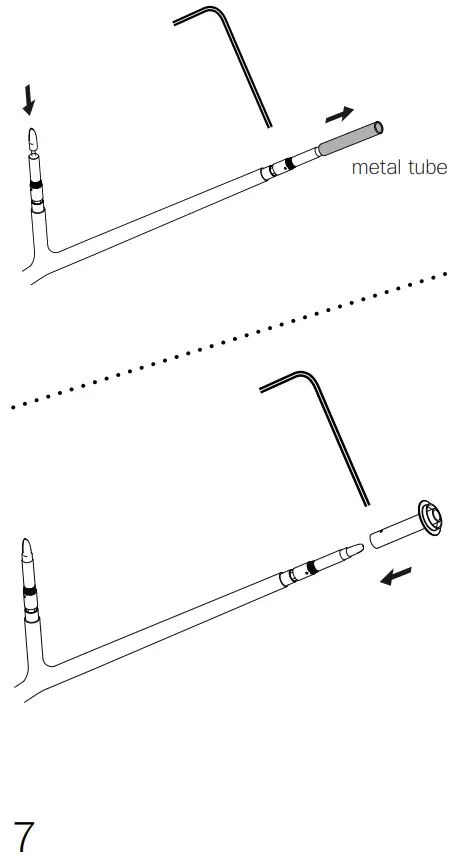 - Remove the metal tubes at the end of each branch by unscrewing the set screw. Insert provided LED into socket. Check that each lamp is working properly as you go along by keeping the power on.