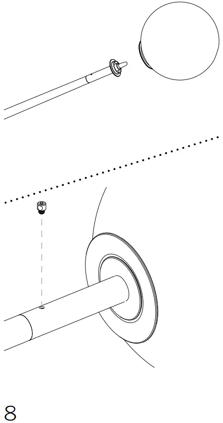 - Thread the ball end of the aircraft through the set screw. The ball end of the aircraft should sit nicely inside the set screw.