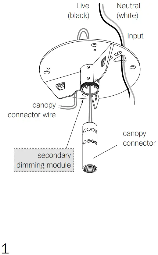 Feed the Live and Neutral wires through slots on the canopy bracket.