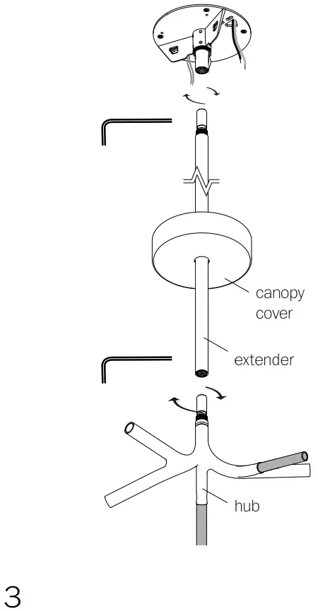 Note: If the system does not require an extender, then thread the hub onto the canopy connector and secure with set screw.