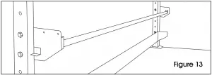 - Place light steel beam (13) at desired depth underneath brackets. Fasten to brackets with two 4¾” bolts and flange nuts. (See Figure 26)