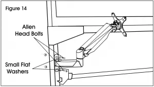 - Secure to uprights with two M6 x 35 mm or M6 x 50 mm Allen head bolts, two small flat washers and two hex nuts using an Allen wrench and 10 mm wrench. (See Figure 14)