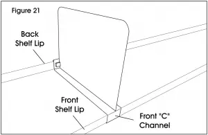 - Line up front “C” channel of divider (7) with front lip of top shelf. Insert divider into front lip at angle. Once in place, allow divider to drop and magnetize to back shelf lip. (See Figure 21)