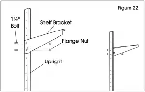 - Secure to uprights with four 11/2” bolts and flange nuts. (See Figure 22)