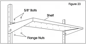- Place shelf (9) on brackets. Install to brackets with four 5/8″ bolts and flange nuts. (See Figure 23)