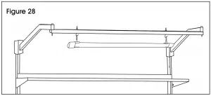 - Attach hanging chains to LED shop light (11) and mount to “S” hooks. (See Figure 28)