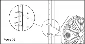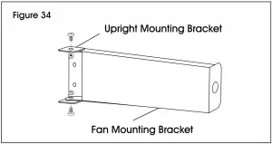 - Slot 6″ or 10″ fan mounting bracket between opening in fan upright mounting bracket. Align holes of each bracket and attach using two M6 x 12 mm hex bolts and two M6 flange nuts. (See Figure 34)