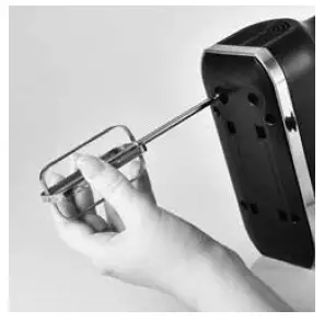- To remove the beaters and dough hooks, hold them with one hand, press the eject button with the other and pull to release.